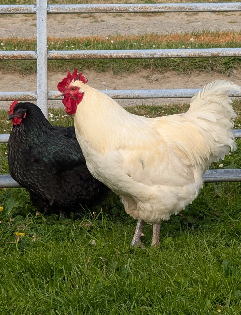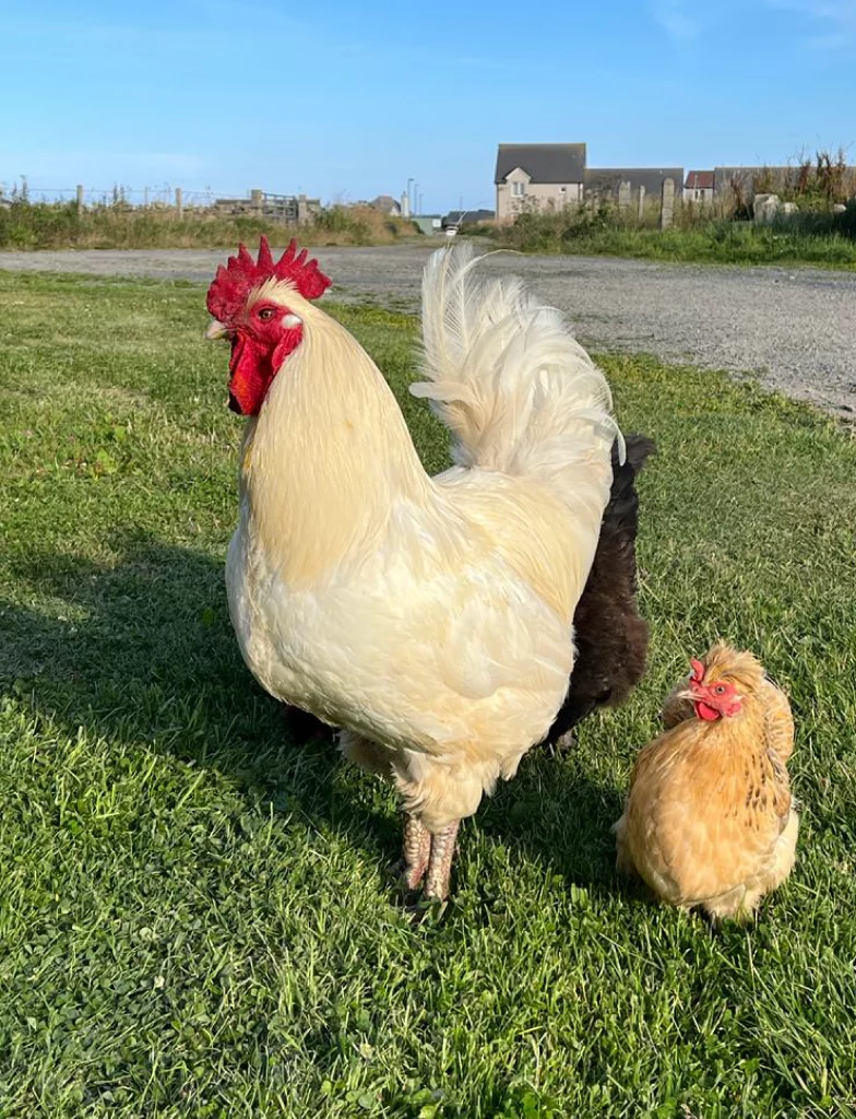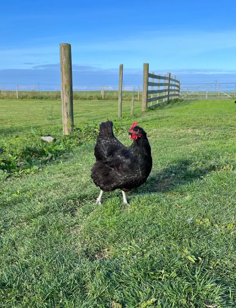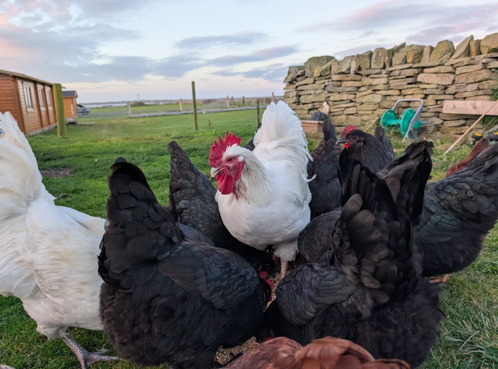 We have a flock of friendly chickens who enjoy roaming around the grounds. They might come say hi every once in a while.